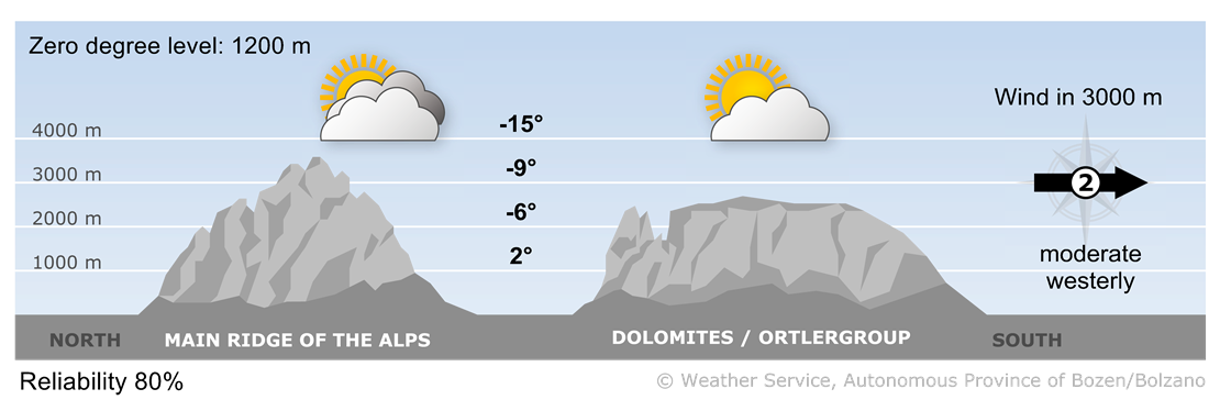 On Saturday, cloud cover will tend to increase with only sunny spells. During the day, it will begin to snow on the border ridge.