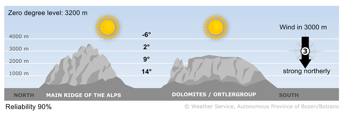 It will be very sunny with generally clear skies. The Föhn wind will continue to blow in the northern valleys.