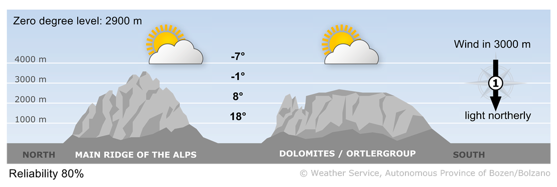 Monday will bring a mix of sun and clouds with only isolated showers. A foehn wind will blow in the northern valleys.